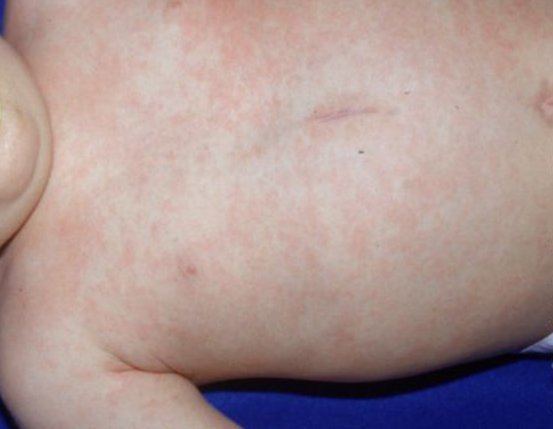 Picture Source : A baby with roseola rash in the chest and abdomen